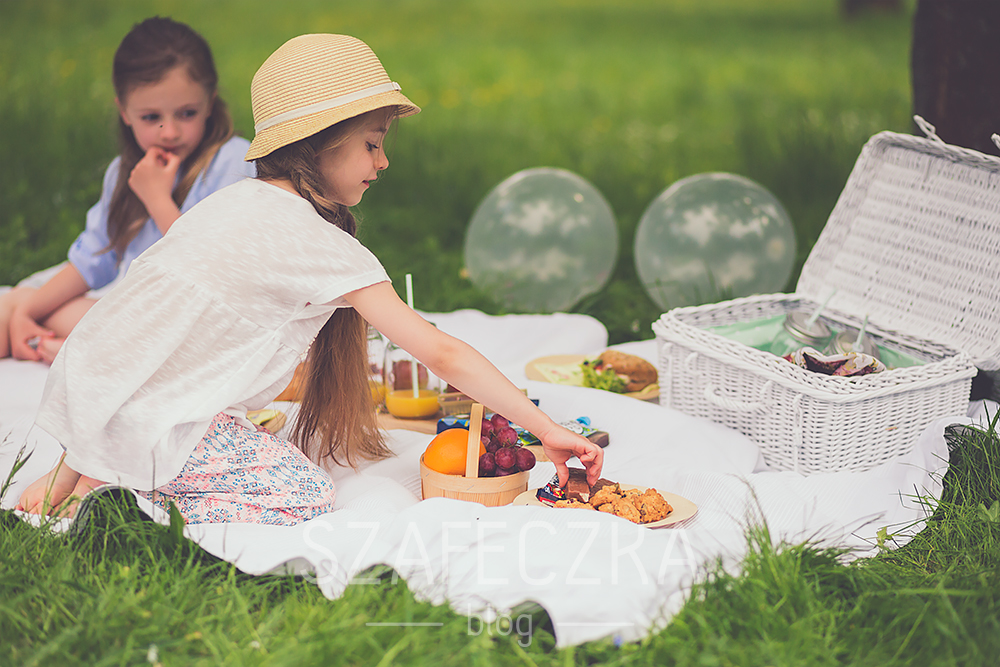 Wystarczy przygotować przekąski, które po części muszą naśladować te dorosłe, ale przy okazji nadawać się dla dzieci ;) My postawiliśmy na wedlowskie smakołyki, ciasteczka i kanapki z rogalików! Do tego picie, koc, kilka zabawek i gotowe!